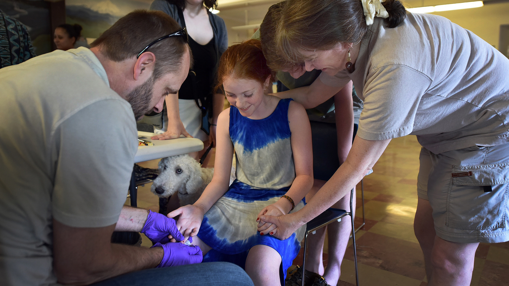 Personal de Salud Ambiental y Salud Pública del Condado de Multnomah acudió a la clínica junto con miembros del Cuerpo de Reserva Médica, un grupo de médicos, enfermeras y otros profesionales clínicos voluntarios de todo el condado que se unen al Departamento de Salud en caso de una emergencia de salud pública a gran escala. Consejeros de salud conductual y nutrición del Condado de Multnomah y personal de los centros de salud escolares del Condado se unieron a enfermeras del Distrito de Servicios Educativos de Multnomah en ambos eventos.
