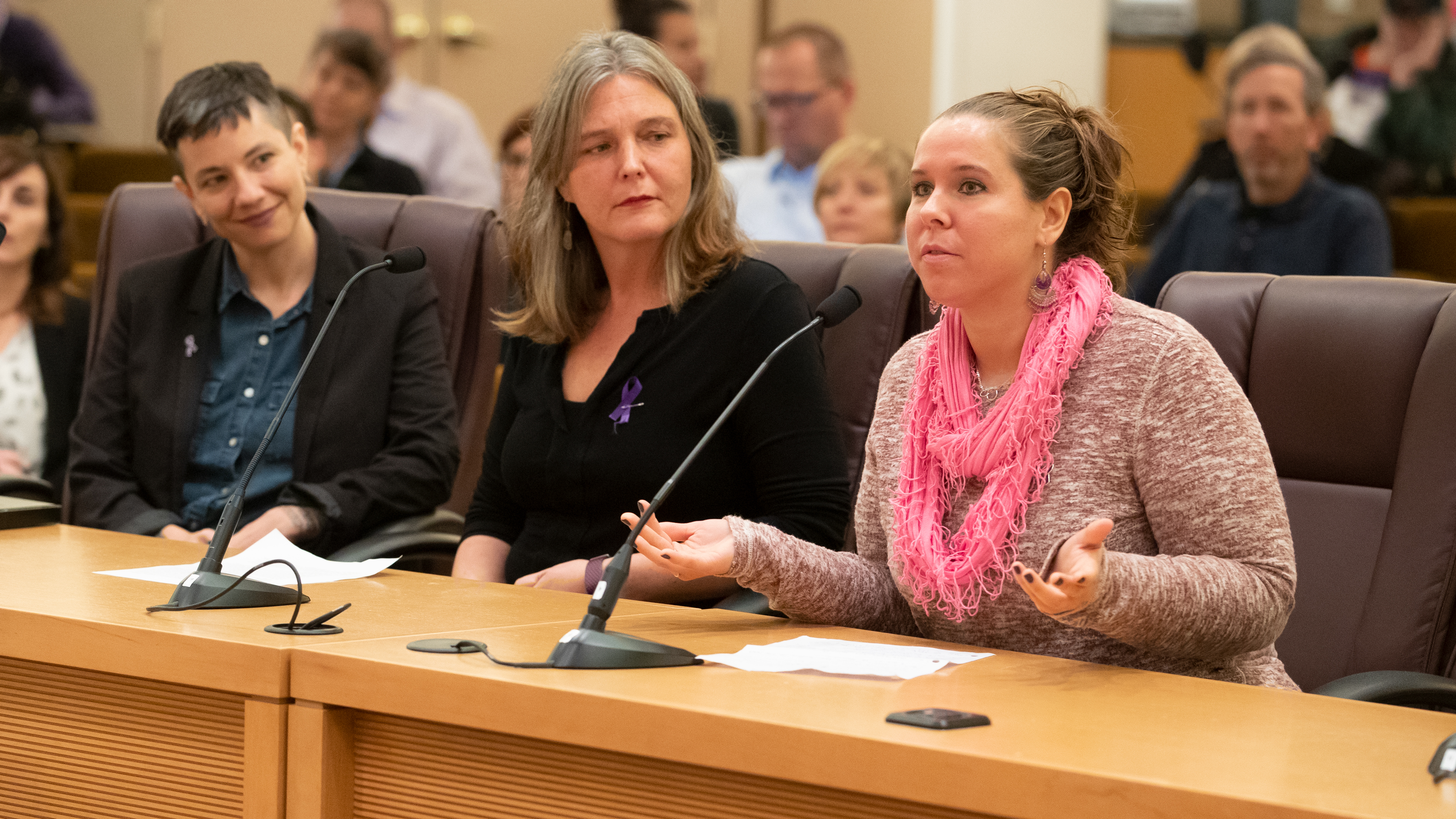 La presidenta Deborah Kafoury comentó que el trabajo del condado en materia de violencia doméstica le afecta profundamente. Su madre, Gretchen Kafoury, expresidenta del condado de Multnomah, atendió a sobrevivientes de violencia doméstica como miembro de la comunidad.