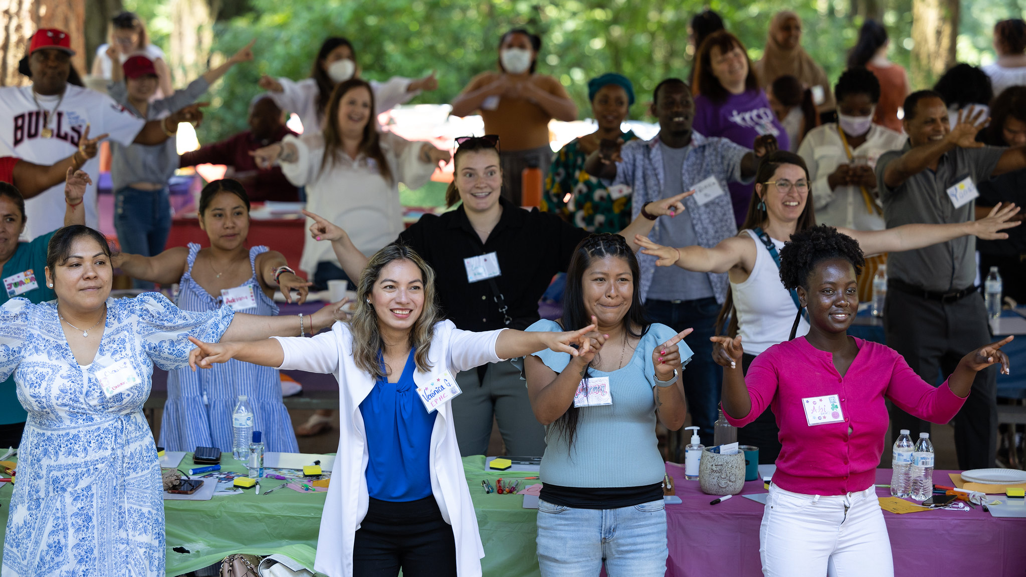 En un hermoso día de verano bajo el refugio del Parque Mt. Tabor, los trabajadores de salud comunitarios del condado de Multnomah se saludan con abrazos y alegres "buenos días". Para muchos, esta es la primera vez que se ven en persona después de dos años de reuniones virtuales. Se han reunido para celebrar y honrar su increíble labor durante la pandemia de COVID-19.