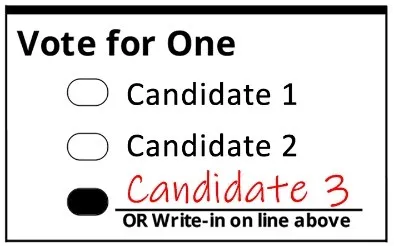 To vote for a write-in candidate who does not appear on the ballot, completely darken the oval to the left of the line provided for the office and write the full name of the candidate on that line.