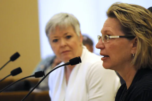 Health Department director Joanne Fuller (right) and Environmental Health director Jae Douglas at Thursday's board meeting.