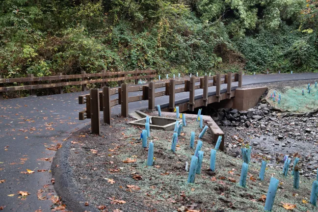 Crews planted nearly 60 trees and more than 600 plants around the bridge to help some of the forest grow back after construction.