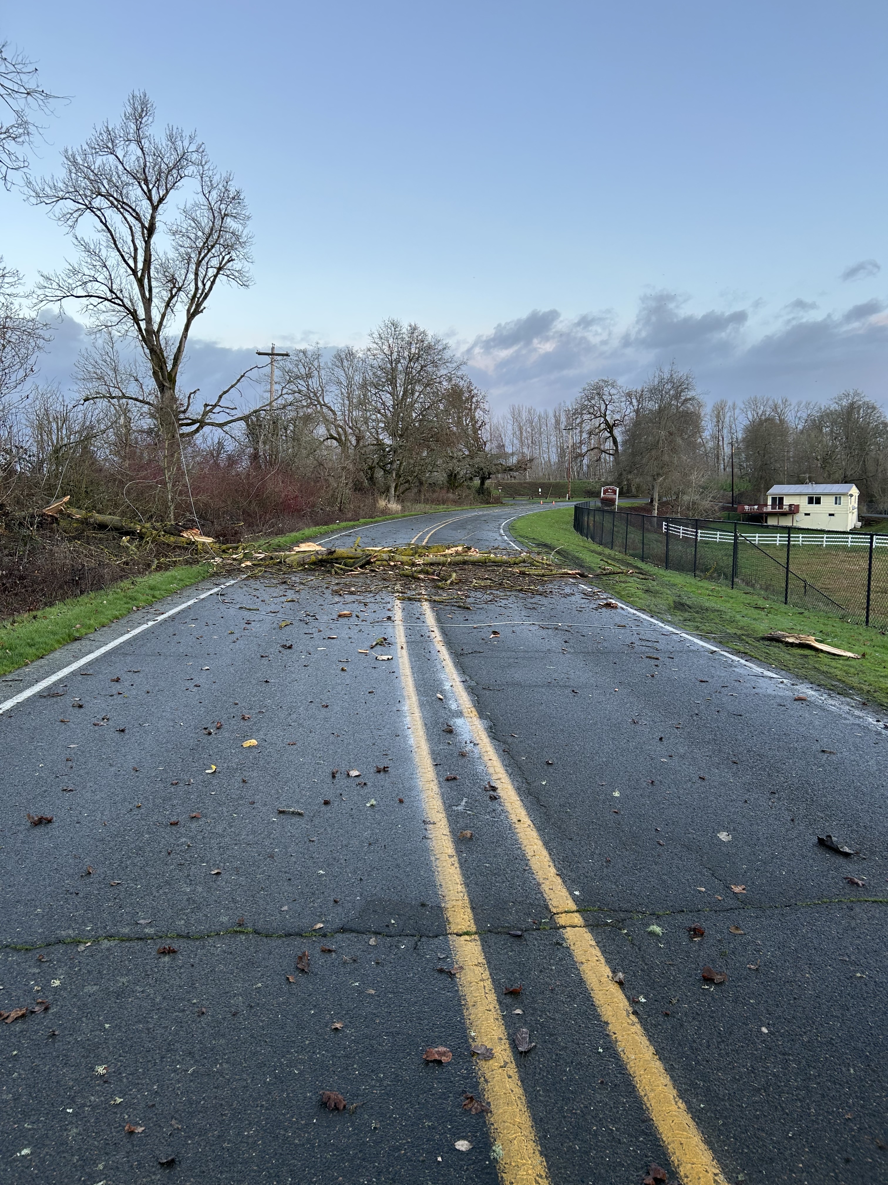 Multnomah County, Ore. (Dec. 17, 2025) — TRAFFIC ALERT: Multnomah County Transportation Division has closed part of N.W. Reeder Road on Sauvie Island after a tree fell, bringing down a power line that is now lying across the road.