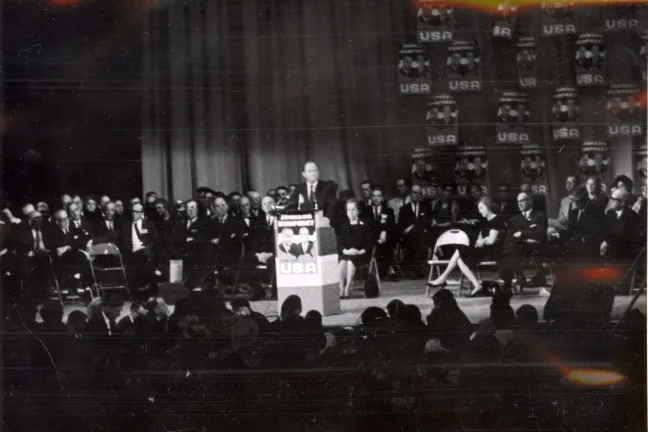 Johnson’s visit came 10 days after the release of Johnson’s infamous “Daisy ad,” one of the most controversial political ads of all time. Widely regarded as a negative ad against Goldwater, it implied that if Goldwater became president, America would end up in a nuclear war. The ad aired only once before it was immediately pulled. Even still, entire books have been written about it. Some believe it influenced the ad called Silo that Hillary Clinton ran during her campaign against Donald Trump.